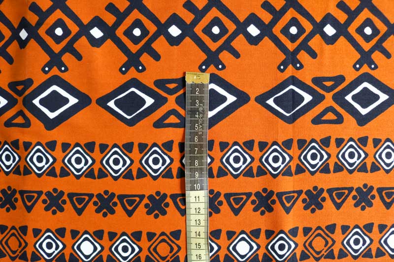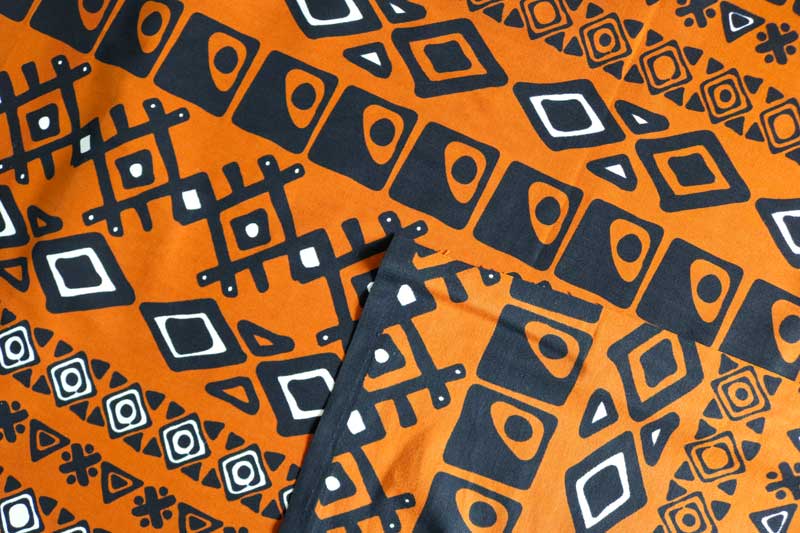 Tecido africano Wax laranja e preto – cor, cultura e solidariedade
